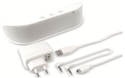 Genießen Sie Ihre Lieblingsmusik zu jeder Zeit an jedem Ort. Dieser kompakte Lautsprecher im zeitlosen, modernen Design ermöglicht Ihnen, dank Batteriebetrieb, mobilen Musikgenuss auf Reisen, Ausflügen, oder an gemütlichen Abenden. Über einen integrierten 3,5 mm Klinkenanschluss lassen sich Smartphones, Tablets sowie MP3-Player einfach und schnell anschließen. Ebenfalls können Sie den Lautsprecher über jeden USB-Anschluss Ihres Laptop's oder PC's nutzen. Technische Daten: Betrieb über USB-Netzteil (5 V-/1 A) oder 4 Micro-Batterien (nicht im Lieferumfang) 3 Lautsprecher Anschlüsse: 3,5 mm Klinke, Mini-B USB Farbe: weiß Gewicht: 255 g Maße (BxHxT): 211x55x63 mm Lieferumfang: Lautsprecher, Klinkenkabel, USB-Kabel (A/Mini-B), Netzteil+